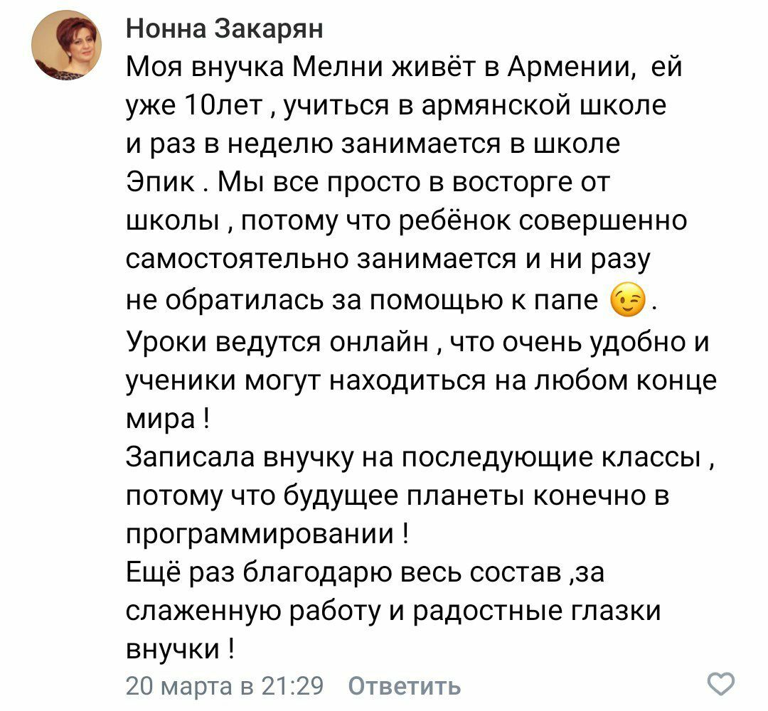 10.1. Претензии и требования принимаются Исполнителем по адресу: по электронной почте: epic.school@mail.ru